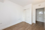 Triple glazed doors to Juliette balcony, wall lights. Tiled flooring to kitchen, range of wall and base level units, work surfaces with splash backs, one and a quarter bowl stainless steel sink and drainer with mixer tap. Electric oven with four ring hob, extractor hood, fridge/freezer.