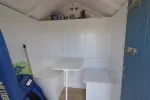 This beach hut is in very good condition, featuring a neat pull-down table and ample storage space, making it perfect for relaxing days at the beach or entertaining friends and family. Whether you are looking for a weekend getaway or a place to unwind during the summer months.