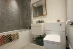 Newly refurbished with a modern sink unit, w.c., bath and shower.