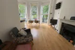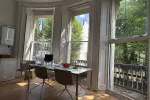 This charming and spacious first-floor apartment includes the added advantage of two additional rooms on half landings—currently utilized as a laundry room and a home office/storage room. The apartment is filled with period character, including high ceilings, ornate plaster cornicing, expansive sash windows, and two period fireplaces.