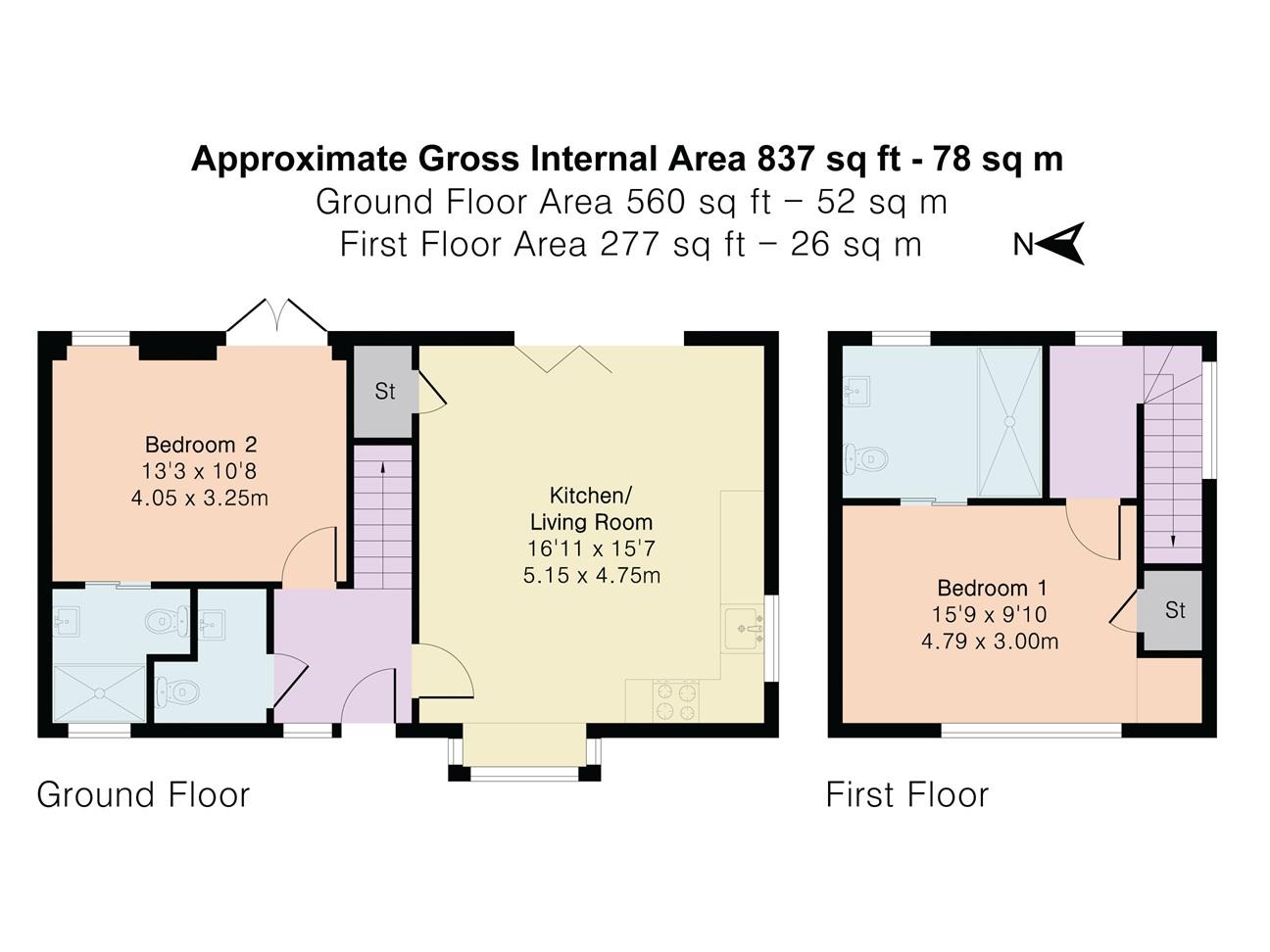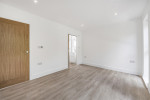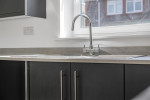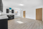 This attractive space is bathed in natural light from a double-glazed bay window and stylish bi-fold doors that open directly onto the rear patio and garden. The well-planned kitchen area features modern floor units, a sink, hob, and extractor fan, creating a functional yet welcoming setting where residents can cook, relax, and entertain with ease. There is access to storage cupboard.